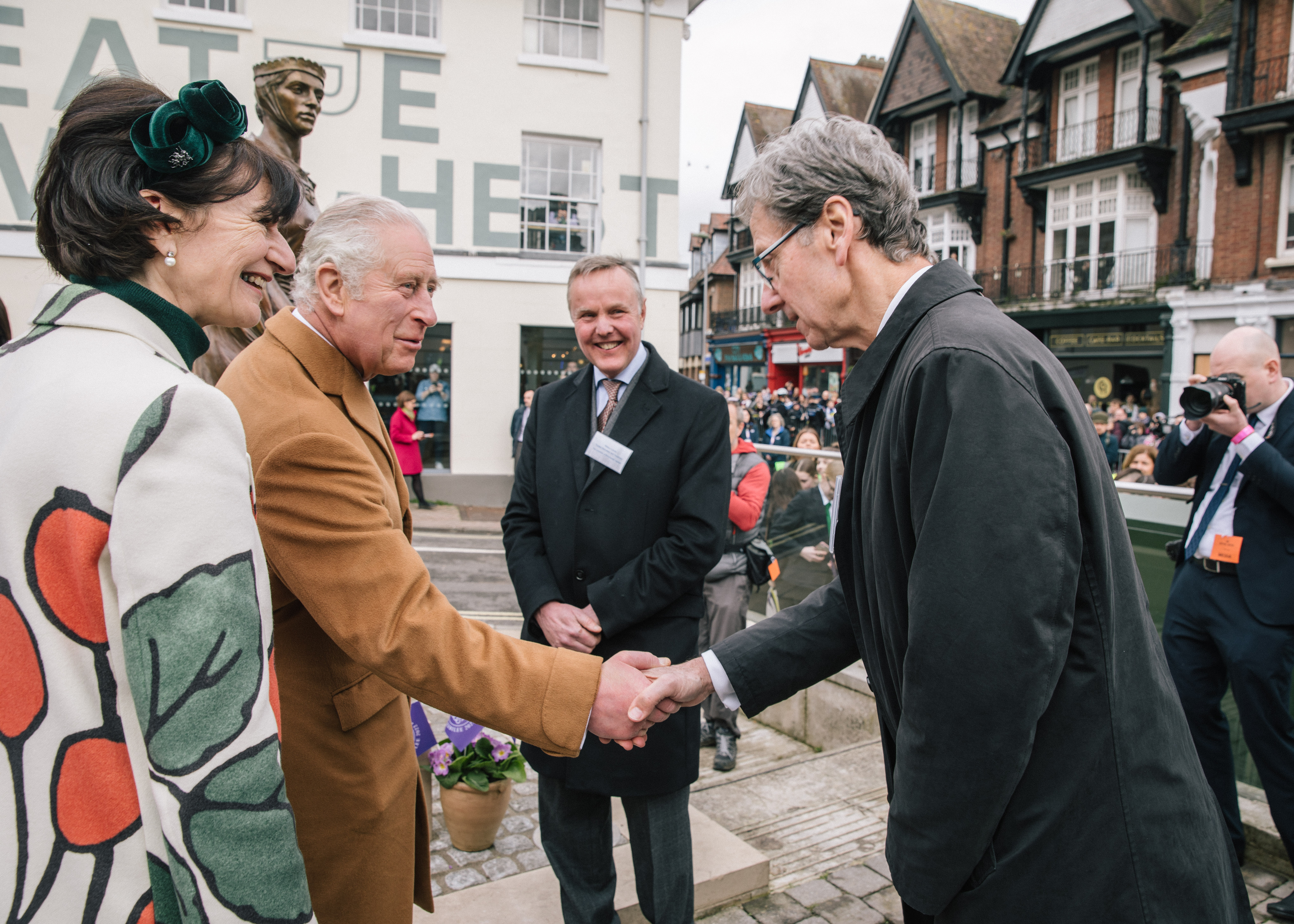 HRH Prince Charles, with the Lord-Lieutenant of Hampshire, Mr Nigel Atkinson, Ian Rank-Broadley FRSS, William Carver and children from Winchester listen to the speech by the Chairman and Founder of The Licoricia of Winchester Appeal, Maggie Carver CBEWilliam Carver talks about Licoricia of Winchester with HRH Prince Charles, with Ian Rank-Broadley and Maggie CarverIan Rank-Broadley, Prince Charles and Licoricia of WinchesterIan Rank-Broadley describes the statue to HRH Prince CharlesPrince Charles at the statueTrustees Tony Stoller CBE, William Carver, Chairman Maggie Carver CBE, Ian Rank-Broadley FRSS, Danny Habel, Paul Lewthwaite