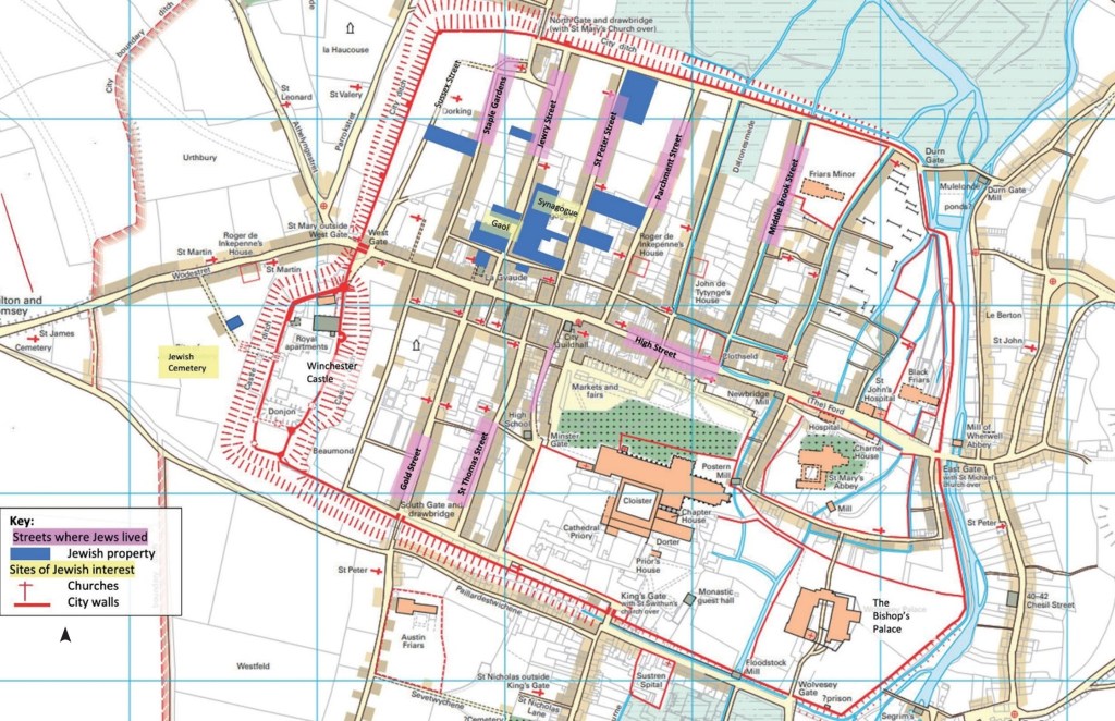 There are many sites of Jewish interest in the City, which is not surprising given the significance and duration of the community in what was then one of the foremost cities in England. These include the Great Hall, where business transactions often took place, the castle, where the Archa containing records of loans was placed, the Cathedral, which contains medieval paintings of Jews, and Jewry Street, where the synagogue was located and Licoricia lived. A Jewish token was found during excavations in Brook Street, Winchester, which is in the care of the Winchester Excavations Committee.